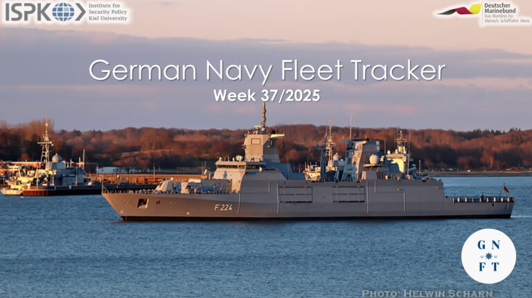 The Germany Navy Fleet Tracker is a project by the Center for Maritime Strategy and Security (CMSS) at the Institute for Security Policy at Kiel University and the Deutsche Marinebund (DMB). It is a weekly updated source for information of the current missions and exercises of the German Navy and its partner navies. Have a look at the Fleet Tracker and choose between the latest update, the main Fleet Tracker database and the archive.